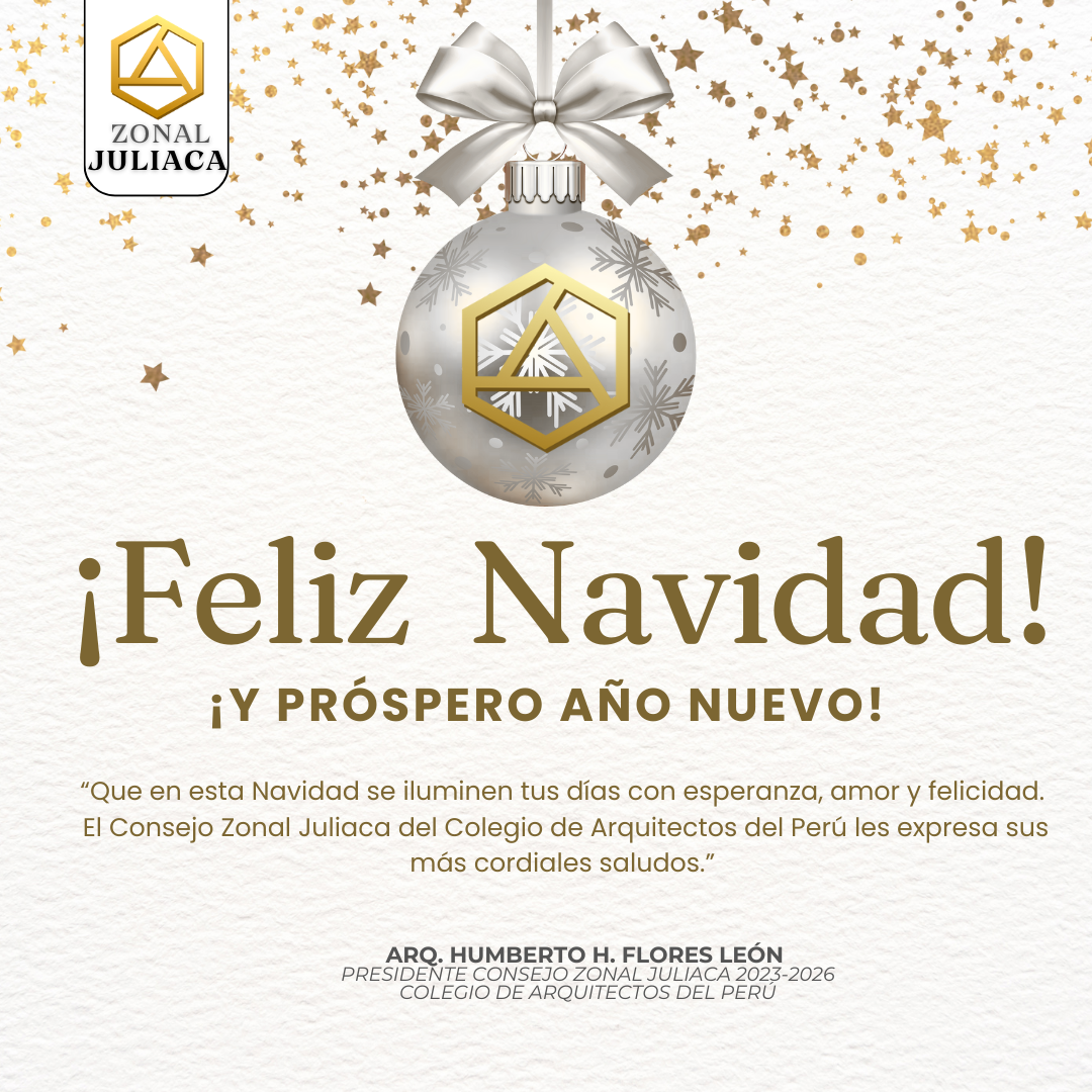 “Que en esta Navidad se iluminen tus días con esperanza, amor y felicidad. El Consejo Zonal Juliaca del Colegio de Arquitectos del Perú les expresa sus más cordiales saludos.”