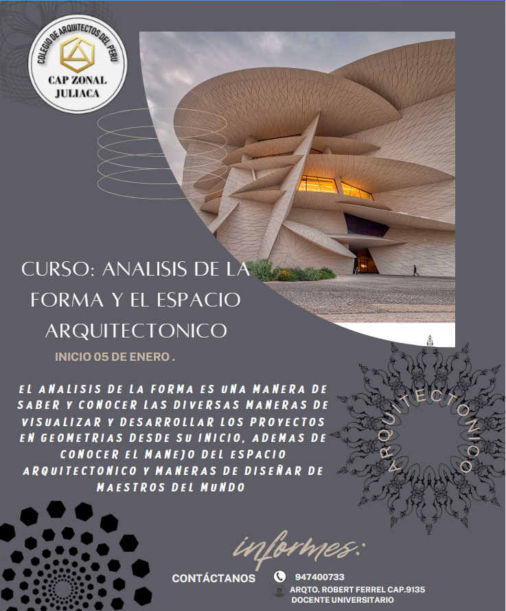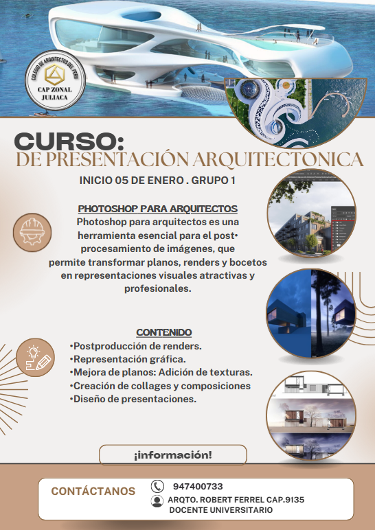 Colegio de arquitectos zonal juliaca invita a todos nuestros agremiados a nuestro curso de REVIT que se llevara acabo el dia viernes 30